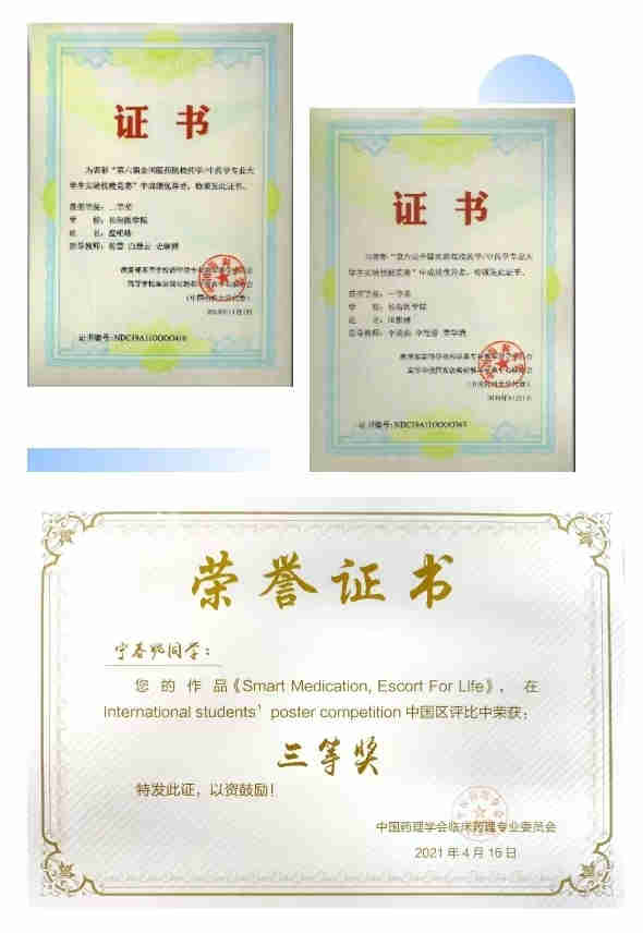 药学专业学生在近两届全国药学/中药学专业实验技能大赛中获一等奖1项、二等奖2项、三等奖1项;在全国第一届医药院校药学/中药学世界大学生创新创业暨实验教学改革大赛中获二等奖1项、三等奖1项;在“互联网+”创新创业大赛、“创青春”、山西省第十五届兴晋挑战杯大学生创业大赛中获三等奖2项。近五年来药学系在校生获批各级大学生创新创业训练计划项目20余项,发表论文10余篇。