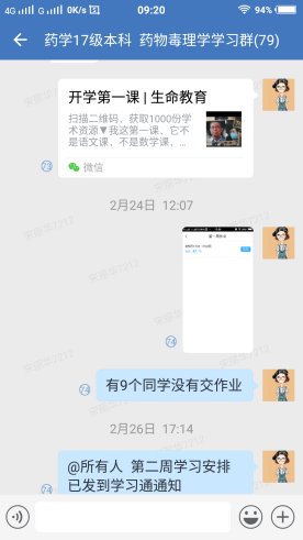 自接到学校有关疫情防控期间教学工作实施方案以来,药学系全体教师以高度责任感和使命感积极做好线上教学的各种准备工作,以饱满的工作热情和良好的精神风貌保证了2月17日国家教育部倡议的“停课不停学”的顺利开展。为保证确保教学质量,药学系教学督导委员从3月9日开始采用分组形式入驻各门课程的学习通平台以及其他教学平台如微信、QQ、企业微信群等,持续不断地展开了网络教学督导工作。